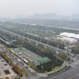 11月6日,中度污染天气下的临汾城区。摄影/章轲