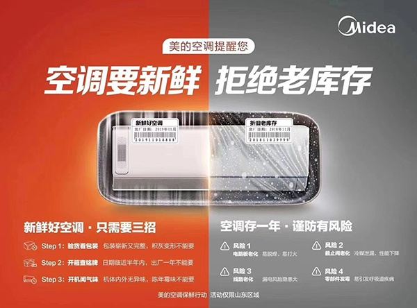 11月,美的空调在区域市场启动“保鲜行动”,明确提出拒绝库存机,承诺不销售生产日期超过一年甚至半年的空调,直指格力渠道的高库存。