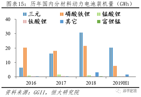 由于动力电池财政补贴能量密度门槛提升及消费者对高续航新能源汽车的青睐,三元材料电池装机量占比持续提升。据GGII披露,2019年上半年三元体系动力电池装机量为20.22GWh,市占率达67.35%,较2016年提升44.46个百分点。
