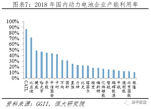 整体产能过剩,结构性问题突出。由于行业规模效应、政策扶持、资本涌入等因素,我国动力电池产能扩张迅猛,当前产能严重过剩,且高端产能不足、低端产能利用率极低。据国家863电动车重大专项动力电池测试中心主任王子冬披露,2018年我国动力电池总产能达260GWh,销售仅50GWh。据GGII统计,2019Q2我国动力电池企业整体产能利用率只有32.4%,2018年龙头CATL产能利用率高达86%,而排名第3的捷威动力产能利用率只有49%不到一半,第10名星恒动力只有25%。
