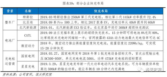 快充技术日益受到产业链重视,不同背景的上下游企业纷纷布局。整车厂特斯拉今年3月份推出其第三代超级充电桩,充电功率250kW,相比二代充电桩功率提升72.4%;电池厂CATL在今年9月法兰克福展会上展示了其超级快充技术,15分钟可将电池从8%充到80%,相比常规充电技术时间缩短一半;充电桩运营商国家电网,在其2018年3月招标文件中首次出现475kW充电桩招标需求。