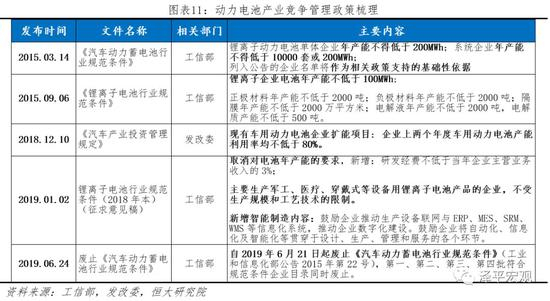 2)第二阶段为鼓励企业做强。2018年12月发改委发布《汽车产业投资管理规定》要求,只有上两个年度车用动力电池产能利用率均不低于80%的动力电池企业才能扩产。2019年1月工信部发布《锂离子电池行业规范条件(2018年本)(征求意见稿)》,取消对企业产能要求,鼓励企业制造数字化、智能化。此外,2019年工信部发布《废止《汽车动力蓄电池行业规范条件》公告,动力电池白名单自2019年6月21日取消。