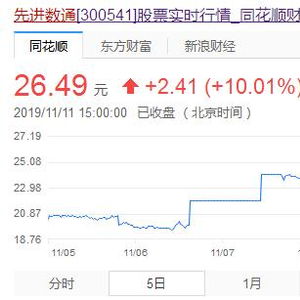 截至今日收盘,先进数通股价报26.49元,涨幅10.01%,市值为47.97亿元。