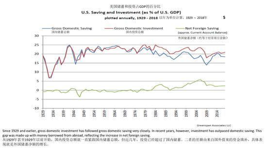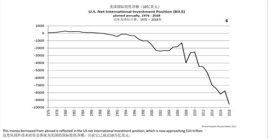 图五,从1929年甚至1929年以前开始,在美国国内投资的总额就一直紧跟着国内的储蓄总额。但是近几年,投资已经超过了国内储蓄,二者的差额是来自国外借来的资金所填补的,具体表现就是外国储蓄净额的增长。