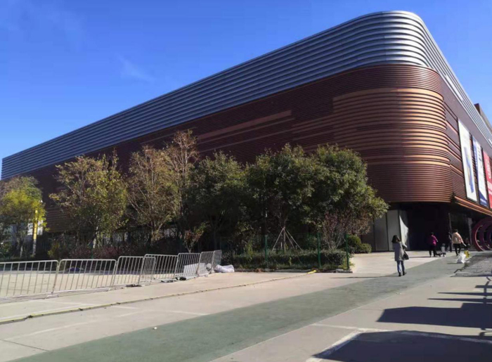 金属格栅水平线条为主题的外观,让万达广场在周边满是住宅区中显格外醒目,具有较高的辨识度。未进万达广场,先见迷你动物园,坐落在商场西南角,1号入口被这块“绿林”有所遮挡,对于初来者会有点摸不着方向。在广场外面体验业态的填充,足见万达经营团队为聚集人气所作的努力。