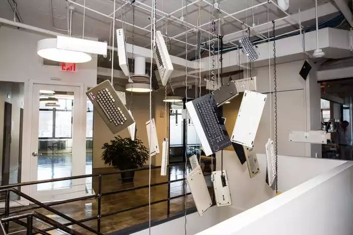 除此以外,他们的办公室布置也是别出心裁。在他们位于纽约的办公室里,悬挂着的鼠标和键盘,也展示了这一家依托于信息技术而蓬勃发展起来的对冲基金,对计算机历史的纪念。