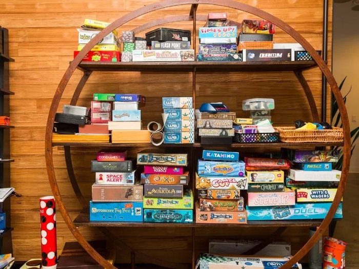 他们的与众不同也不至于自己的策略。与讲究西装革履、穿着体面的华尔街金融精英不同,Two Sigma的员工似乎更像是硅谷的工程师。他们不仅不需要穿西装、打领带,办公室的布置也与传统金融机构全然不同,甚至还拥有一面摆满了桌游道具的木架。