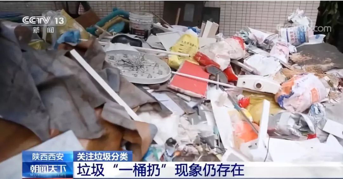 然而,在一些老旧小区,垃圾“一桶扔”现象仍然存在。在碑林区文艺路自由宅小区,居民垃圾不分类就随意丢进桶里;即便有分拣,物业管理员也只是出于经济需求,把废纸箱纸盒拣出来,并非从环保角度出发。