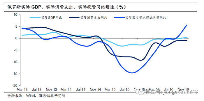 相比之下,经济的反映更为滞后,15年经济才全面进入衰退。相比于资本市场对消息的反映更为迅速,俄罗斯经济自14年三季度开始下滑,但到15年才真正跌入负增。与墨西哥类似,严重的通胀也通过投资和消费拖累俄罗斯的经济增长。一方面,大幅提高市场利率和局势动荡对俄罗斯投资抑制明显,2015年投资增速下降至-11.2%;另一方面,通胀也削弱了居民的购买力,导致2015年消费增速下降至-7.8%。此外,作为俄罗斯最重要的出口品之一,油价暴跌也严重影响了俄罗斯的出口贸易,内外交困下2015年俄罗斯GDP同比增速仅为-2.5%。