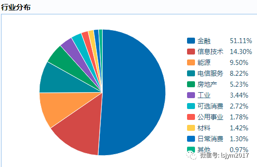 金融行业占比已下降到51%,信息技术占比为14.3%,能源和电信服务占比分别为9.5%和8.22%,行业分布更加均衡。