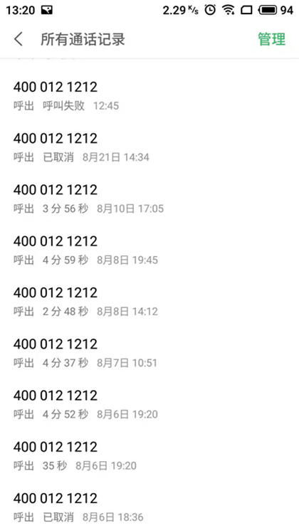 图为王先生多次拨打易安公司电话,联系报案