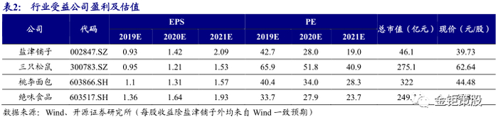 受益公司:盐津铺子、三只松鼠、桃李面包、绝味食品