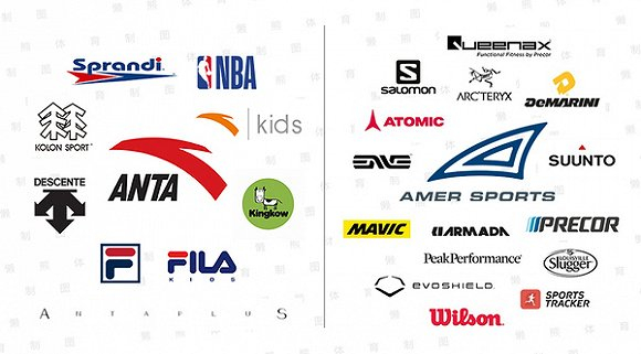 亚玛芬体育包含众多高端运动品牌(右)