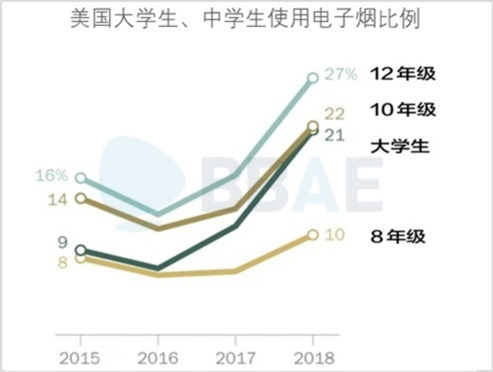 另一个原因是吸食电子烟的青少年数量激增。因为调味电子烟更加吸引青少年的吸食,比如在美国大多数年轻人喜欢水果或糖果味的电子烟。但是电子烟中的尼古丁会逐步让青少年成为真正的吸烟者。而我国的“电子烟断电”禁令,主要意在禁止电子烟向未成年人销售。