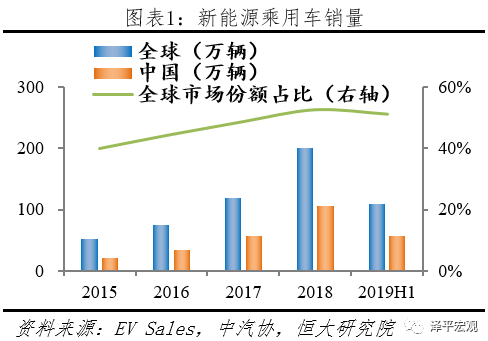 近年来,在政策推动和指引下,我国新能源车行业发展迅速,数据显示,我国新能源车已连续四年全球市场第一,2018年全球新能源乘用车共销售200.1万辆,中国市场占了105.3万辆,超过其余国家总和。与传统燃油车市场一样,乘用车是市场绝对主角,2019年上半年,新能源车产销高速增长,分别完成61.4万辆和61.7万辆,同比增长48.5%和49.6%,其中纯电动车产销分别完成49.3万辆和49.0万辆。