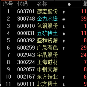 今日早盘,稀土永磁概念板块获资金追捧,多只概念股在开盘15分钟内集体冲高。