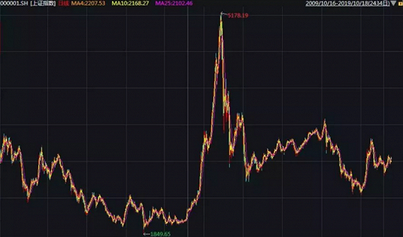 2009年10月16日上证指数收盘点为是2976点,而2019年10月16日上证指数收盘点位是2977点。也就是说,十年时间过去了,上证指数值上涨了一个点。