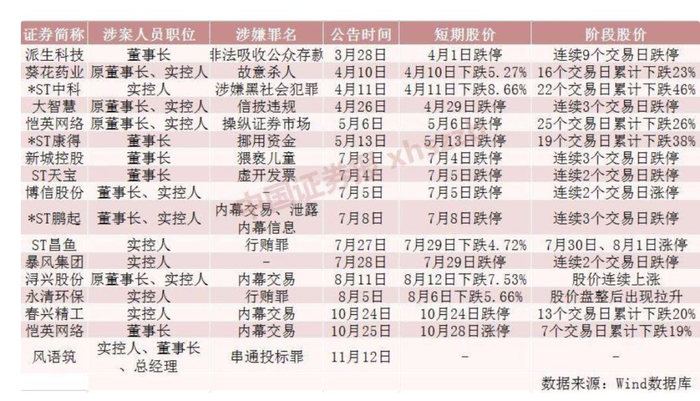 在今年爆出董事长或实控人被抓涉及多家上市公司来看,实控人被刑拘都引发了二级市场的股价巨震,波及股东数累积超过百万户。