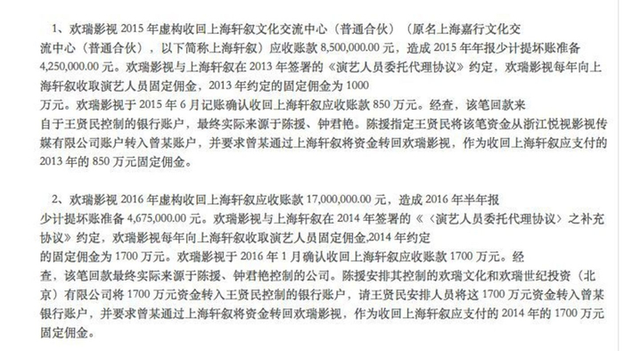 欢瑞对签约艺人是真的好,是愿意冒着违法风险也要对艺人付出“真爱”的好。这点从欢瑞近期公布的,《关于收到中国证监会重庆监管局行政处罚决定书》的公告中即可窥探出。