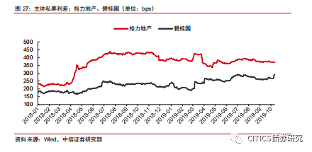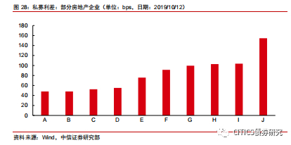 不同主体的私募利差有所区别。影响私募利差的以上因素在不同发行人之间存在一定的差异,因此,不同主体的私募利差可能会有明显的区别。以部分房地产企业为例,最新的私募利差从48bps到155bps不等,跨度比较大,对于私募利差较高的房企,一定程度上反映了市场更需利差保护的态度。