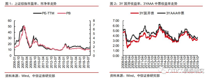 收益率是债券市场的估值标尺。任何资金配置行为,一旦进入“投资”的范畴,就必然需要引入估值。股票投资的估值方法比较多,常见的包括P/E、P/B和P/S等,而特定行业还会用到P/NAV、P/EV等专用的估值公式。相比之下,债券投资的估值方法比较统一,除部分垃圾债以预计回收率作为估值标尺外,无论是利率债还是信用债,债券收益率和债券价格都是一体两面,进行投资必然需要对收益率做判断。实际上,与P/E、P/B为代表的股票估值曲线相比,债券收益率走势具有更加稳定的中枢,适合作为估值标尺。