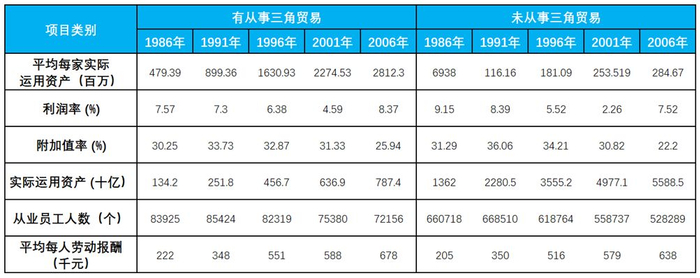 我们通过对比涉足三角贸易与未涉足的企业经营情况,可以看出对外投资力度较高(充分利用外部优势资源)的企业在利润率、附加值率的上升上都战胜了其他企业。