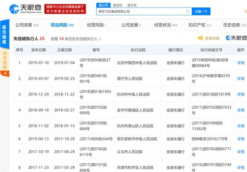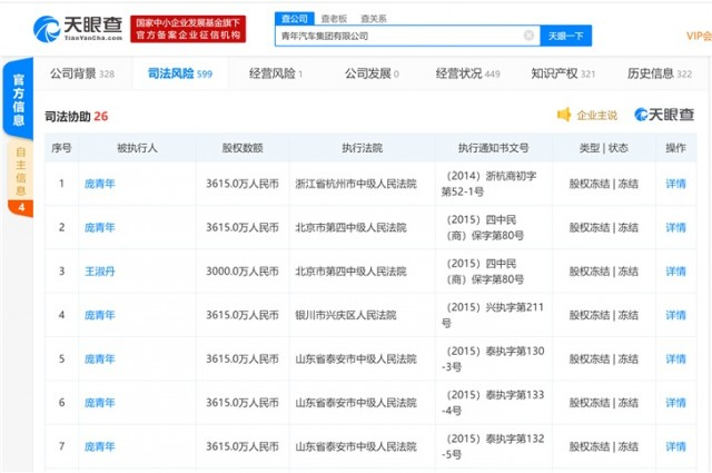 此外,伴随着青年汽车破产的还有“掌门人”庞青年20余次被列失信名单,据天眼查数据显示:青年汽车集团的法定代表人是庞青年,注册资本1亿元人民币。青年汽车共有7条被执行人信息。此外,还有25条失信被执行人信息,原因均为有履行能力而拒不履行生效法律文书确定义务。目前公司多位高管庞青年、王淑丹等股权已被法院冻结。