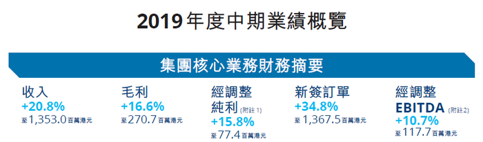 翻看ASL 2019年中期报告中提及,新签订单较去年同期上升34.8%至13.67亿港元。期内收入达13.53亿元,其中欧美业务收入上升31.6%至4.3亿元,总收入占比31.7%,毛利增加至2.7亿港元,欧美业务毛利率达38%,拉升公司整体毛利率情况。经调整纯利则上升至7,740万港元,欧美业务的经调整纯利及经调整EBITDA达4,090万元及6,290万元,分别上升33.1%及18.3%。