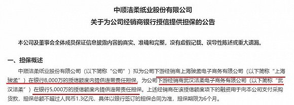除此之外,中顺洁柔还曾为经销商的融资提供担保。