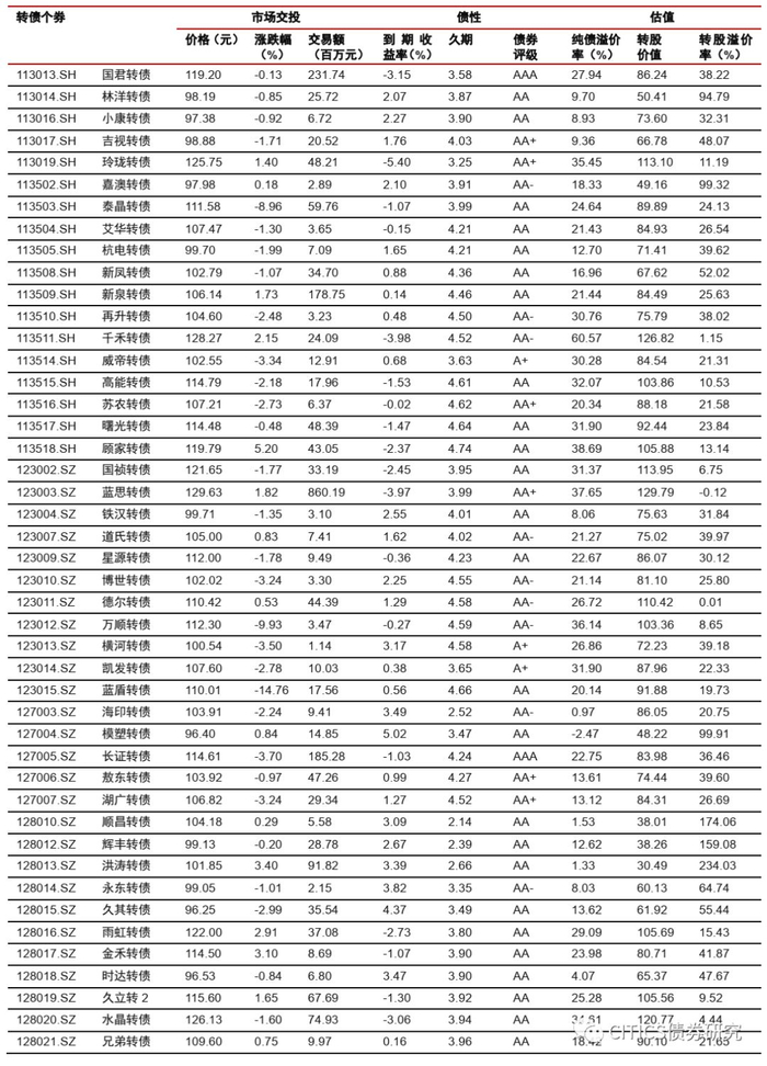 风险因素:市场流动性出现大幅波动,宏观经济不如预期,无风险利率大幅波动,正股股价超预期波动。