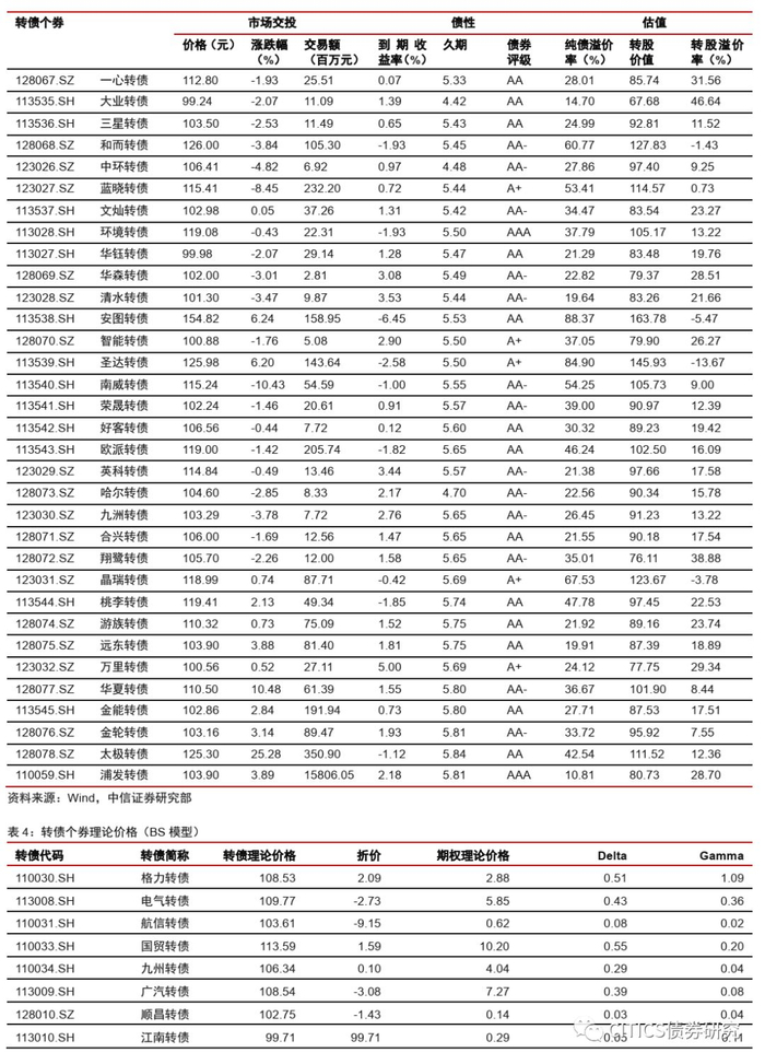 关于转债:应对震荡行情的思路。上周转债市场在权益市场遭遇大幅调整的背景下表现出一定抗跌性,中证转债指数小幅下跌,成交量有所下滑。逼近年末市场逐步转入震荡格局,转债在逐步兑现前期收益的同时建议在更具确定性的方向进行标的筛选。从当下来看,年末业绩考核等压力使得利好因素的释放未能大幅带动市场情绪的回升,风险资产大概率将在波动中度过四季度。这一趋势与我们四季度展望中的判读基本一致,对于转债而言波动反而能提供更多低价机会的时间窗口。在当前市场震荡的背景下,我们提供几点转债视角应对的思路。一是继续将当前转债持仓聚焦在核心资产方向,以较好地应对当前的宏观经济压力;二是布局新券,我们在近期周报中强调未来一段时间是新券密集发行上市的高峰期,不少个券值得关注,且新券可能提供一个相对合理的介入价格,投资者当前可以适当调整仓位结构以吸纳未来新券;三是从中期的角度可以布局明年初潜在的春季躁动行情,发挥转债天然的逆周期特征,其中可以重点关注受益政策对冲的方向。落实至具体策略层面,结合当下市场情绪建议重点关注两个方向:一是与宏观经济敏感度较低以及高股息高分红的板块,具体可以关注大金融、大消费、科技及公用事业板块;二是逆周期布局思路下,出现一定好转迹象且权益市场震荡可以提供更多低价机会的轻工造纸、汽车零部件以及周期板块。高弹性组合建议重点关注参林(百姓)转债、和而转债、国祯转债、洲明转债、水晶转债、启明转债、哈尔转债、太极转债、南威转债以及金融转债。稳健弹性组合建议关注海尔转债、玲珑转债、蓝思转债、亚泰转债、中来转债、久立转2和银行转债。