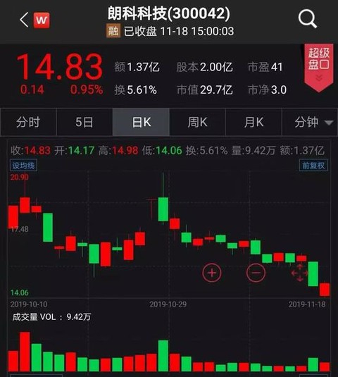 受利空消息影响,朗科科技近日股价连续下挫,15日股价跌停,今日探底回升,收涨0.95%,报14.83元/股。