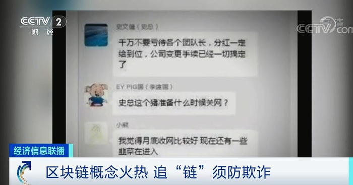今年8月13日,上海浦东警方通报了一起诈骗案。这是一款自称区块链养宠的游戏,将区块链和网络养虚拟猪相结合,共享经济,收益可观。养虚拟猪15天后平台收购,就有28%的收益。警方提供的内部微信截图显示,实际上所有交易都是由平台人员操控,甚至赤裸裸地把参与者称为韭菜,公司随时准备变更手续跑路。