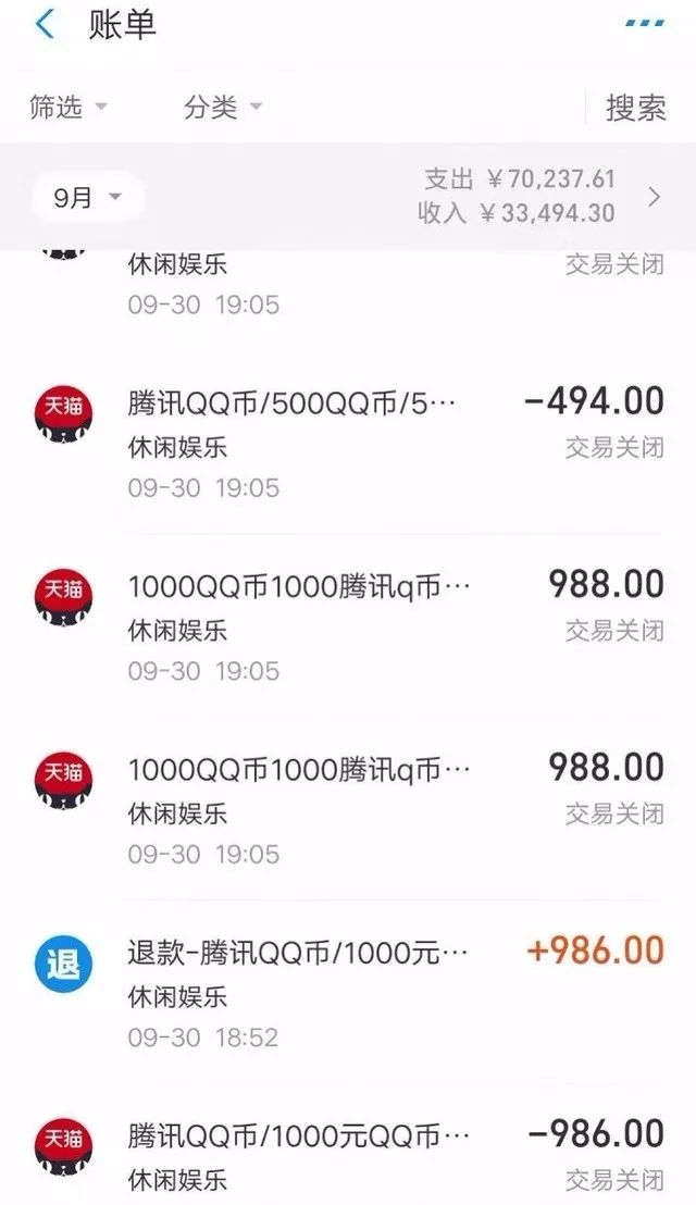 记者从庞先生提供的支出账单中看到,各项支出的交易方是vivo智能手机和各种网游专冲网店,主要用于购买腾讯Q币、“五色石”、迷你币、信用点等网络虚拟用品。金额也从0.99元到988元不等,其中,九百多元的支出占三分之二。