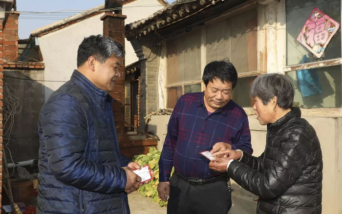 工作人员给村民发放“煤改电”明白卡。密云区煤改电服务监督调度中心供图