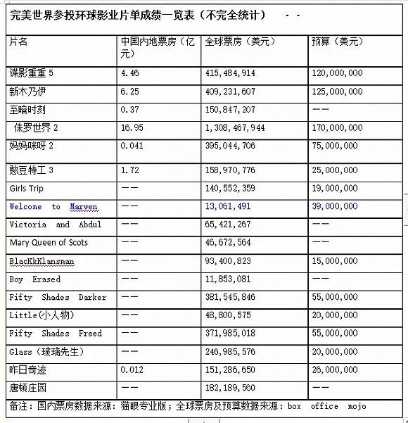 从当前悦幕统计的完美世界参投环球影业的片单成绩来看,除了《欢迎来到马文镇》这一部影片的票房成绩未及预算之外,其它的影片基本在上映后都获得了盈利。