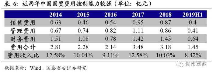 商业地产需要后续运营实现项目增值,日常经营开支也是重要的现金流出部分。与住宅地产不同的是,商业地产开发完成后需要持续的商业运作来实现项目的增值,对房企的招商能力、日常经营管理能力要求较高。运营开支方面主要关注管理费、装修运营费、推广费等各种成本,成本费用的支出也会影响项目的毛利率水平。以中国国贸为例,2018年三费合计为3.18亿元,费用收入比为10.03%,费用绝对规模和费用率均较2017年有所下降,主要是代理佣金支出、酒店开办费和员工成本下降所致,2019年上半年公司的费用收入比为8.42%,较2018年下降了1.61个百分点,公司费用控制能力较强。