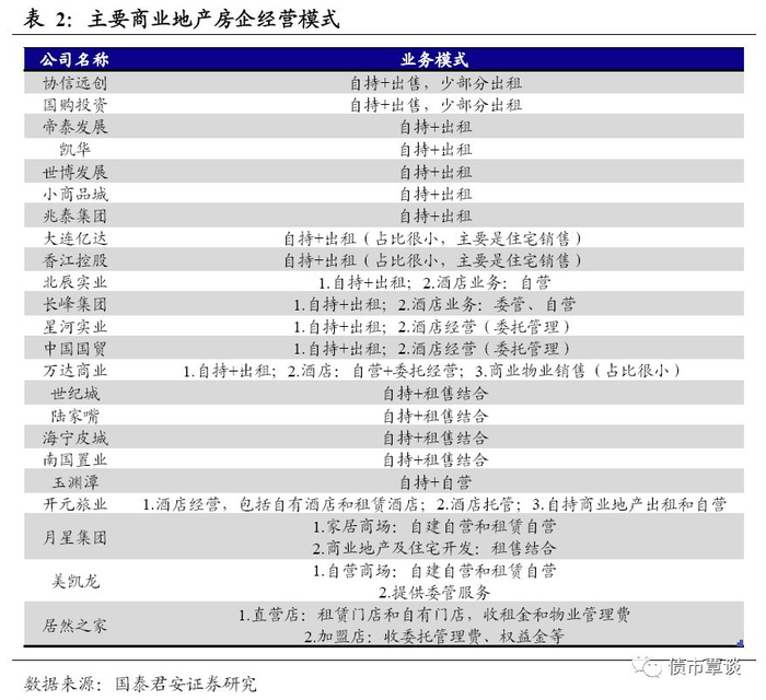 在上一篇商业地产信用分析报告《轻重之辩:商业地产分析框架初探》中,我们简要探讨了“轻”的售模式与“重”的租模式的信用资质差异,以及不同业态目前所处的景气度水平,并对商业地产发行人信用资质进行了打分排序。本篇报告我们将对商业地产不同运营模式做进一步的分类与对比,从而挖掘每种模式其信用资质的核心决定因素。