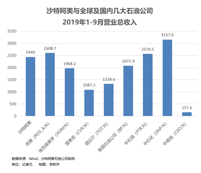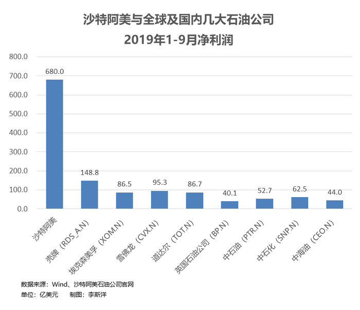 今年4月,沙特阿美在其国际债券募集说明书中首次公开了业绩状况:2018年收入3880亿美元,年净利润1110亿美元,超越老牌跨国石油巨头埃克森美孚(ExxonMobil)、壳牌(Shell)、英国石油公司(BP)、道达尔(Total)和雪弗龙(Chevron)的总和,相当于苹果公司全年净利润(595亿美元)的1.86倍,是名副其实的“世界最赚钱公司”。