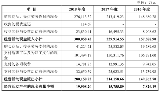 报告期内,玉禾田经营活动产生现金流量净额分别为7023.03万元、7826.19万元、1.58亿元、1.99亿元。2016年,公司经营活动产生现金流量净额低于当期净利润。