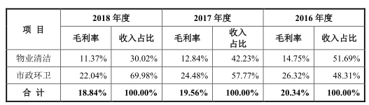 市政环卫毛利率下降,公司称主要由于公司不断改善员工待遇、完善劳动用工的规范性,员工社保、公积金的费用有所上升,导致单位人工成本有所上升;随着公司市政环卫收入持续快速增长,市政环卫业务由众多项目构成,不同项目的毛利率有所差异,同一项目在不同期间的毛利率也有所差异,则不同期间市政环卫项目构成不同会导致总体毛利率有所差异。