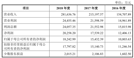2015年至2018年,玉禾田实现营业收入分别为11.17亿元、15.47亿元、21.52亿元、28.16亿元,实现归属于母公司所有者的净利润分别为6454.70万元、1.08亿元、1.54亿元、1.82亿元,经营活动产生现金流量净额分别为7023.03万元、7826.19万元、1.58亿元、1.99亿元。