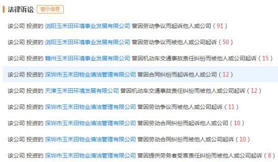 招股书披露了3宗玉禾田及其分子公司作为一方当事人尚未了结的诉讼标的金额200万以上的诉讼、仲裁案件。此外,天眼查显示,公司自身风险有19条,主要为买卖合同纠纷、劳动争议等纠纷;公司周边风险多达451条,主要与子公司、分公司有关,法律诉讼众多。