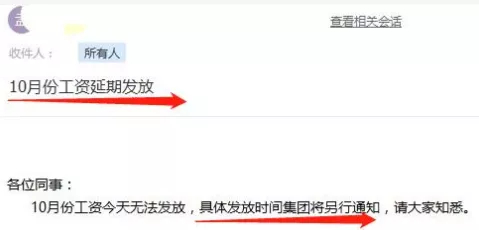 根据集团内部员工爆料,即使在暴雷之前,东旭光电资金就已经紧张到发不出工资了。有媒体曝出旗下子公司已出现延迟发放工资情况,本该这两天到账的10月工资,现已被告知要延期发放,具体发放时间还有待集团另行通知。