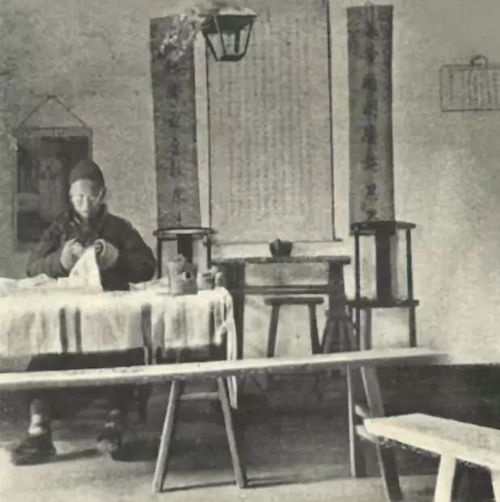 一位裁缝在内地会巴教士的屋里干活(罗安逸,1909)