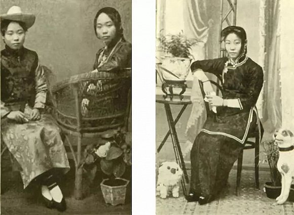 辛亥革命时期兰溪城里的几位新女性,其中左面那位身着男装(罗安逸,1912)