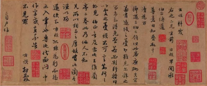 孟頫再拜,右之二兄坐前:孟頫奉别以来,已复三年矣。夙兴夜寐,无往而不在尘埃俗梦间,视故吾已无复存者。但羸得面皮皱折,筋骨衰败而已。意谓吾右之优游闾里中,峨冠博带,与琴书为友朋,不使一毫尘事芥乎胸臆。静中所得,便可与安期羡门同调。近忽得家书,知右之因库役事,被扰异常,家事亦大非昔比,今见挈家在苕玉兄处。令人惆怅无已!然时节如此,切不可动吾心,是有命焉。但安时处顺,自可胜之耳。不肖一出之后,欲罢不能。每南望矫首,不觉涕泪之横集。今秋累辈既归,孑然一身在四千里外,仅有一小厮自随,形影相吊,知复何时可以侍教耶?因黄簿便,草草奉状,拜问起居,时中唯善自爱。拜意苕玉兄长及阿嫂,各请善保。不宣。十二月廿九日,孟頫再拜。
