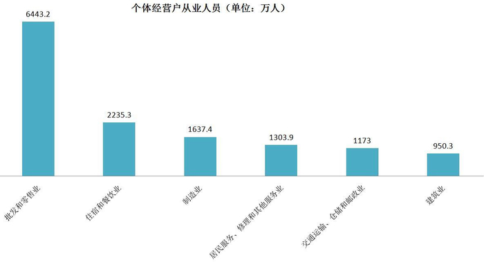 而在个体经营户行业构成方面,公报介绍,个体经营户从业人员人数最多的行业是批发和零售业,人数达到6443.2万人。值得一提的是,其中女性有3325.0万人,占比过半。