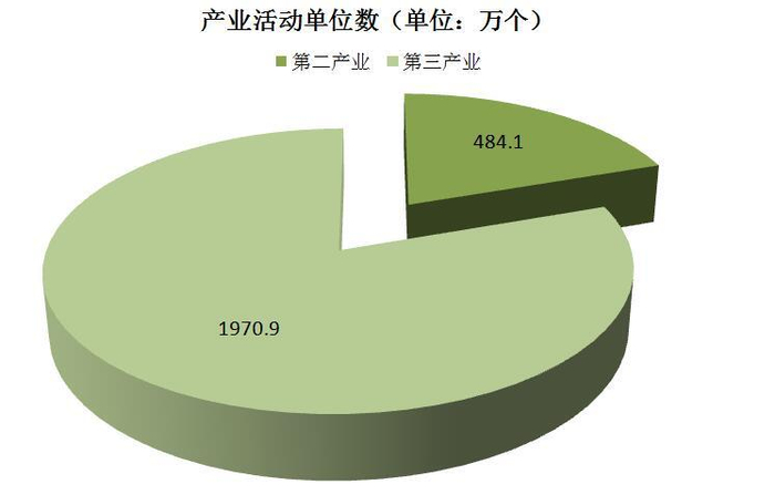 普查的数据显示,第三产业的产业活动单位数量占第二、三产业总数的比重达到80.3%,法人单位资产总计也达到81%,第三产业法人单位从业人员占比达到55%。