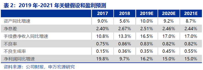 在当前市场流动性较充裕的环境中,邮储银行净息差仍有继续下行的压力,我们预计2019-2021E净息差为2.51%、2.46%和2.44%。